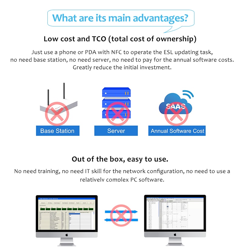 소상공인을 위한 NFC 기술이 적용된 디지털 가격표입니다. 구현하기 쉽고 시작 비용이 낮습니다.